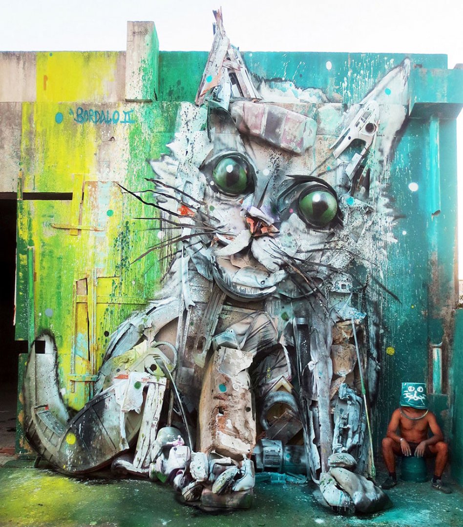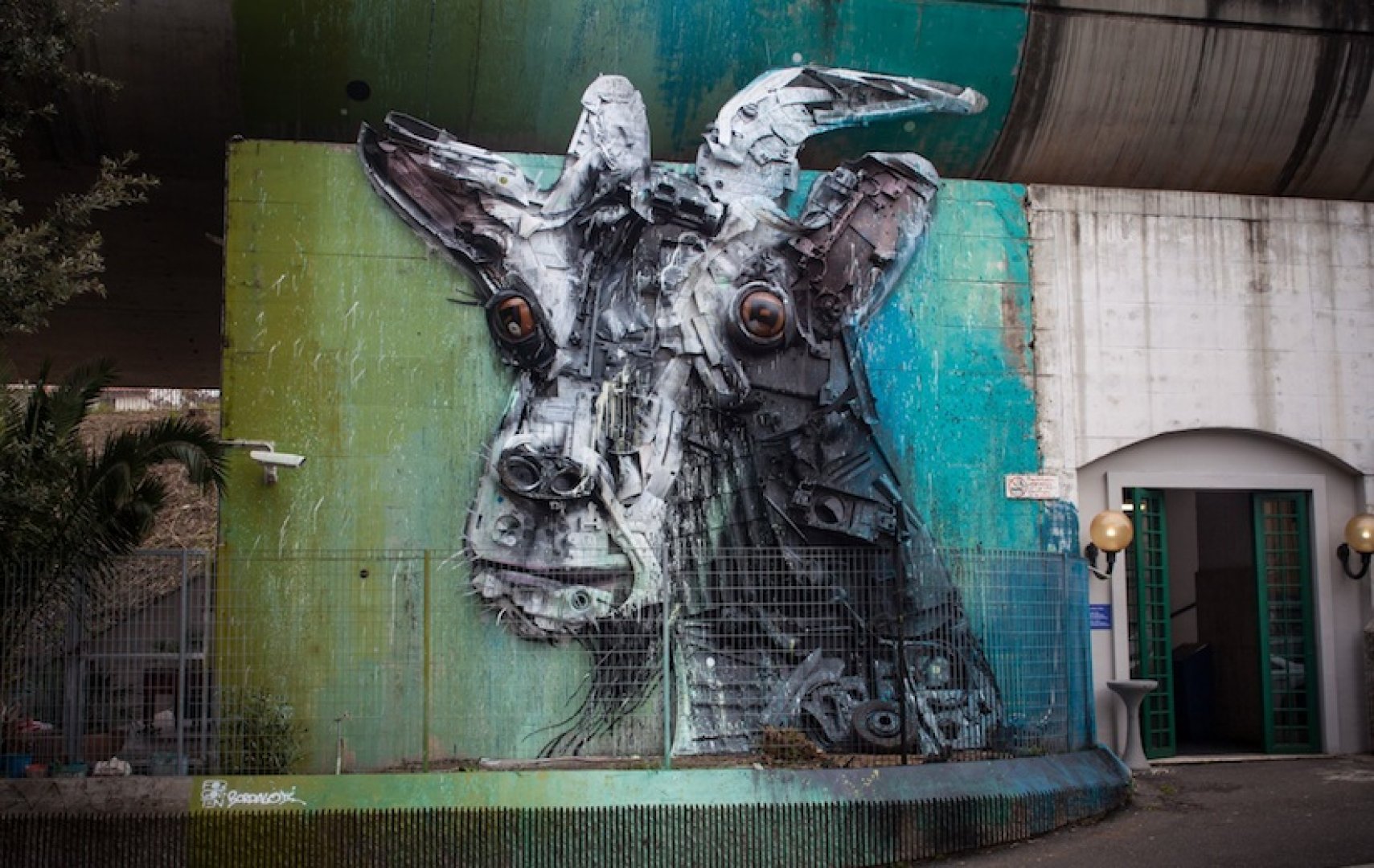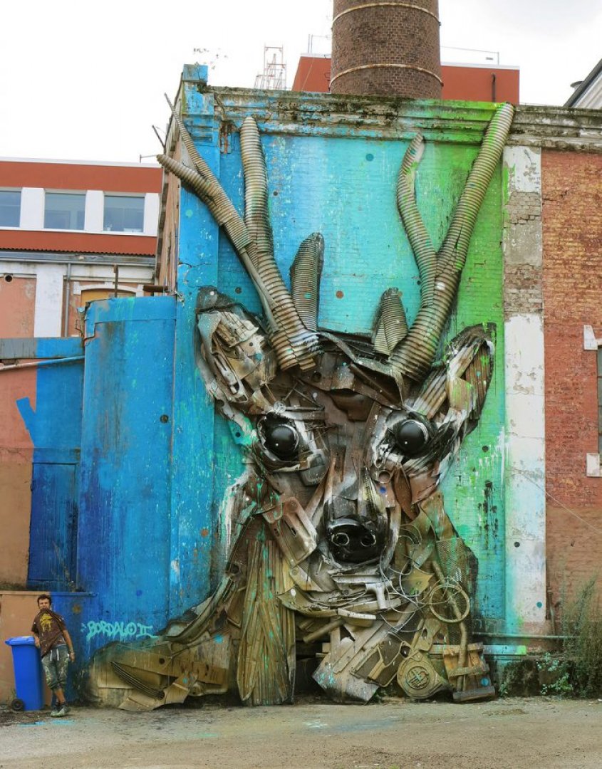 Artur Bordalo jeune artiste Portugais,recycle les déchets pour réaliser des sculptures géantes,il redonne vie aux animaux en utilisant ce qui les tue: le plastique..il voyageà travers le monde et seraà Paris du 26 janvier au 2mars à la galerie  Mathgoth....