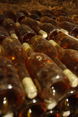 Le vin de TOKAI Certaines caves de la région Hongroise de Tokay, datent du XIIIe siècle ; et l’on devrait plutôt parler de caveaux tant ces boyaux sont étroits et bas. Des constructions uniques, bâties à l’origine pour protéger l’habitant de l’ennemi, qui s’insinuent au cœur des collines de pierre volcanique et de loess en un véritable réseau de labyrinthes. Ainsi, les caves proches du village de Màd descendent à plus de 80 mètres sous terre sur plusieurs kilomètres. L’œil se fait peu à peu à la pénombre et distingue à la faveur d’une torche, dans le cliquetis de l’eau suintante, des centaines de petits tonneaux alignés, les Gonci. Un escalier luisant descend, on bifurque à droite, puis à gauche ; qui n’a pas de plan n’en ressort plus. Dans une anfractuosité, quelques flacons ambrés dorment debout sous le duvet d’une épaisse moisissure noire (la clasporidium cellare) : ils recèlent jalousement du vieux Tokay. Certaines bouteilles sont centenaires.