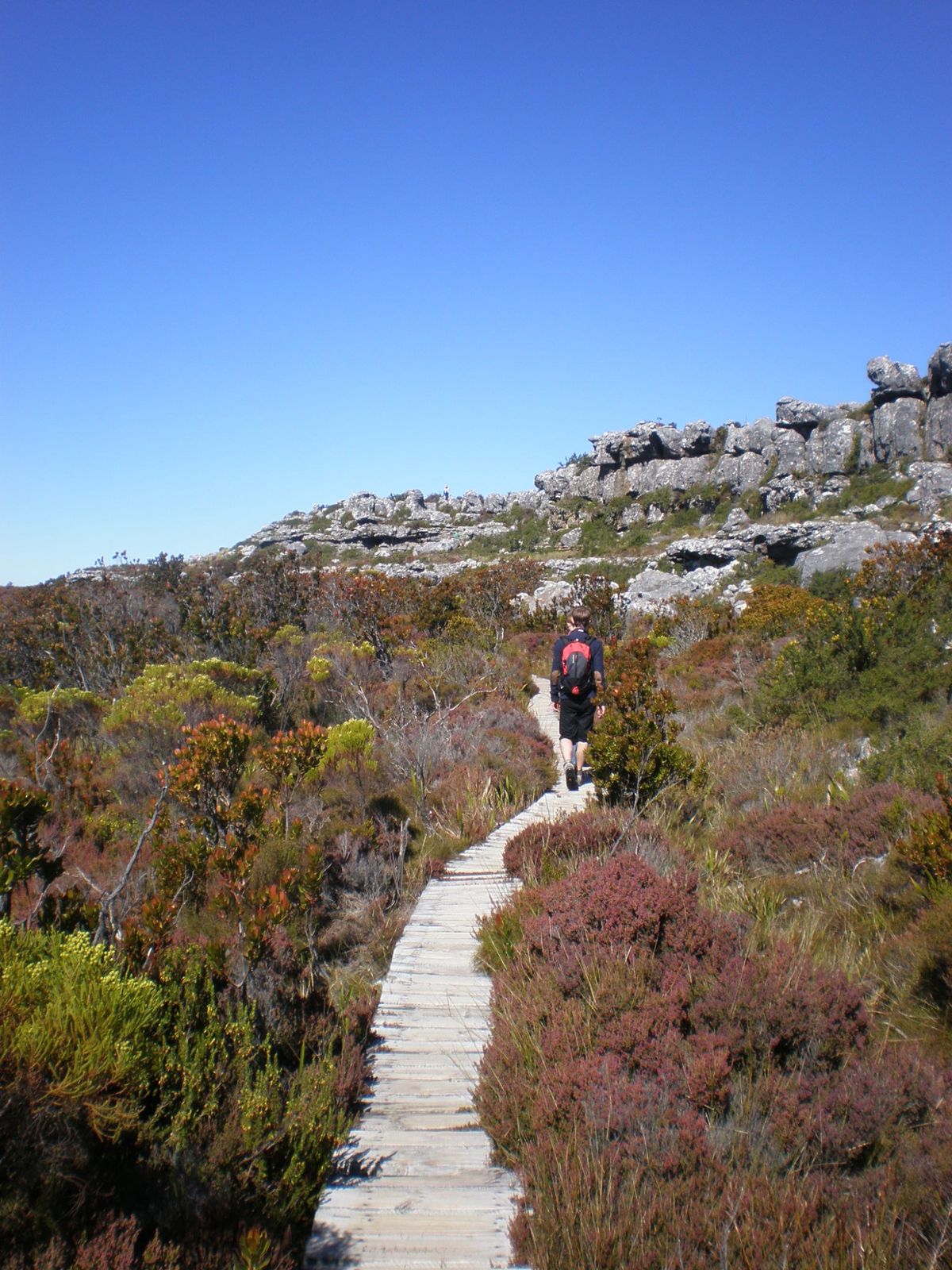 Le Cap et la Table Mountain C’est une ville magnifique où les falaises et les montagnes plongent à pic dans l’océan et qui donne un spectacle absolument superbe. Outre ses plages naturelles, le Cap dipose d’une nature de toute beauté. Allez donc randonner sur la Table Mountain qui surplombe la ville et sentez souffler le vent de l’Atlantique ! Côté Histoire, allez donc faire un tour au large sur Robben Island afin de découvrir les conditions de détention du héro national : Nelson Mandela. Venir au Cap sans grimper la Table Mountain c’est comme vivre en Touraine sans avoir fait quatre fois le tour de Chenonceau. A ce Le sentier qui grimpe au sommet de Table Mountain ne peut être qualifié de randonnée sauvage : le chemin est mieux pavé que la place Plum’ à Tours mais aussi fréquenté qu’un samedi soir ! Le succès du lieu n’enlève rien à la difficulté de ce col hors catégorie. Abandons sur le bas-côté, certain remplissent même leur bouteille en chemin contre les parois suintant d’eau… Le plateau de Table Mountain offre une vue sur toute la ville de Cape Town, Table Bay, False Bay, les 12 apôtres, l’océan Atlantique… La végétation est constituée d’arbustes qui poussent au milieu des rochers ou à travers des zones humides.
