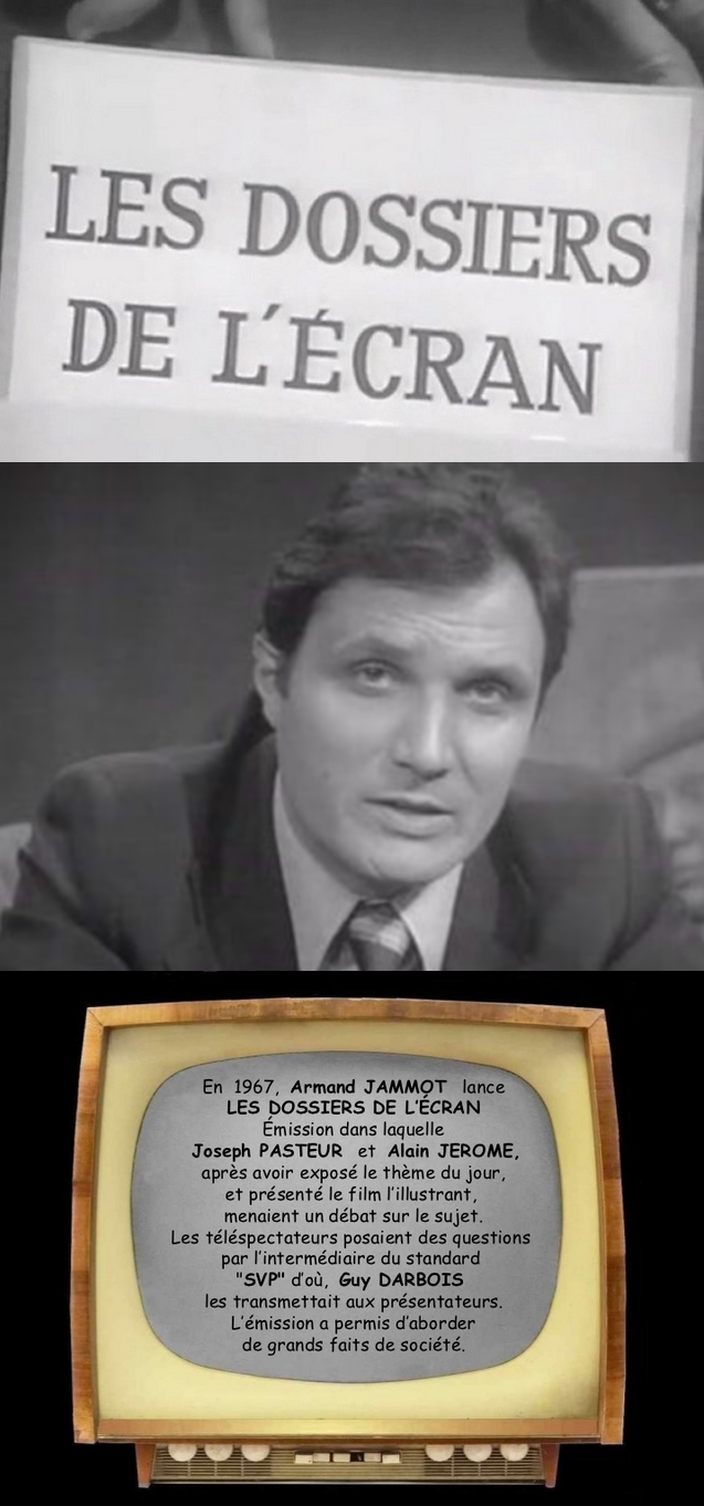 Le dimanche aprés-midi il y avait un film. On allait beaucoup au cinéma avec mes parents, c'était une habitude venant de la famille de ma mère qui depuis son enfance allait au cinéma tous les Dimanches quelque soit le temps. C'est donc resté chez nous aussi mais si il n'y avait pas de film convenable au cinéma, on restait à la maison pour regarder celui de la télévision, visible par toute la famille y compris les enfants, Bourvil, Louis de Funès, et autres, pas de violence ni de sexe bien sur! Par contre une autre émission culte passait le mardi soir, seul soir où nous avions le droit, mon frère et moi de regarder car il n'y avait pas école le lendemain. De plus, pour ma mère institutrice et trés à cheval sur notre instruction, cette émission était éducative! Un film, suivi d'un débat sur un sujet d'actualité ou de réflexion...