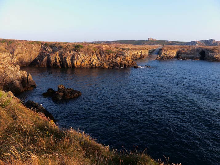 1 La presqu'île du Capelan est reliée à la côte par une petite plage de galets.