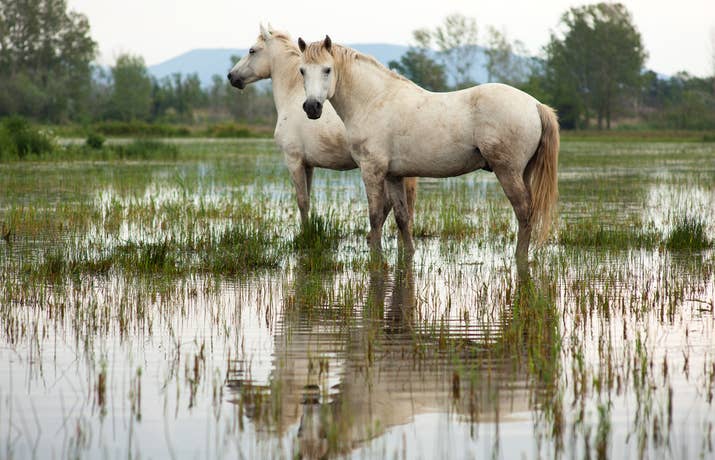 La pêche à la crevette a lieu pendant les journées les plus chaudes où il n'y a pas de glace en mer. Juste avant la marée basse, lorsque la mer s’est éteinte mais pas complètement, les pêcheurs montaient leurs chevaux en portant des chaussures jaune vif et de grandes bottes en caoutchouc, et montaient parallèlement au littoral en traînant derrière eux de gros filets pour ramasser les crevettes et autres poissons. .