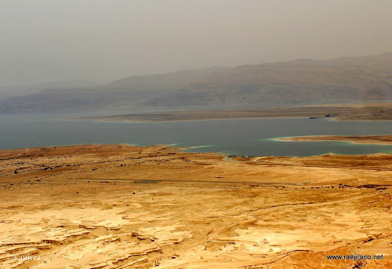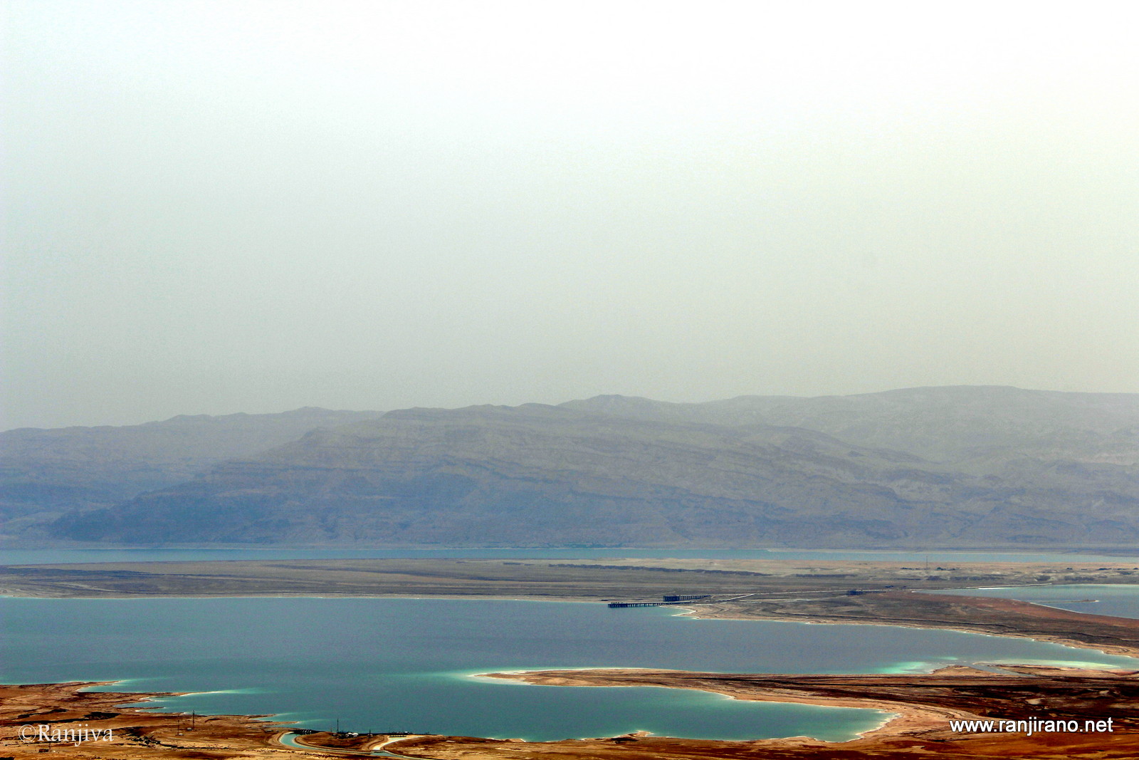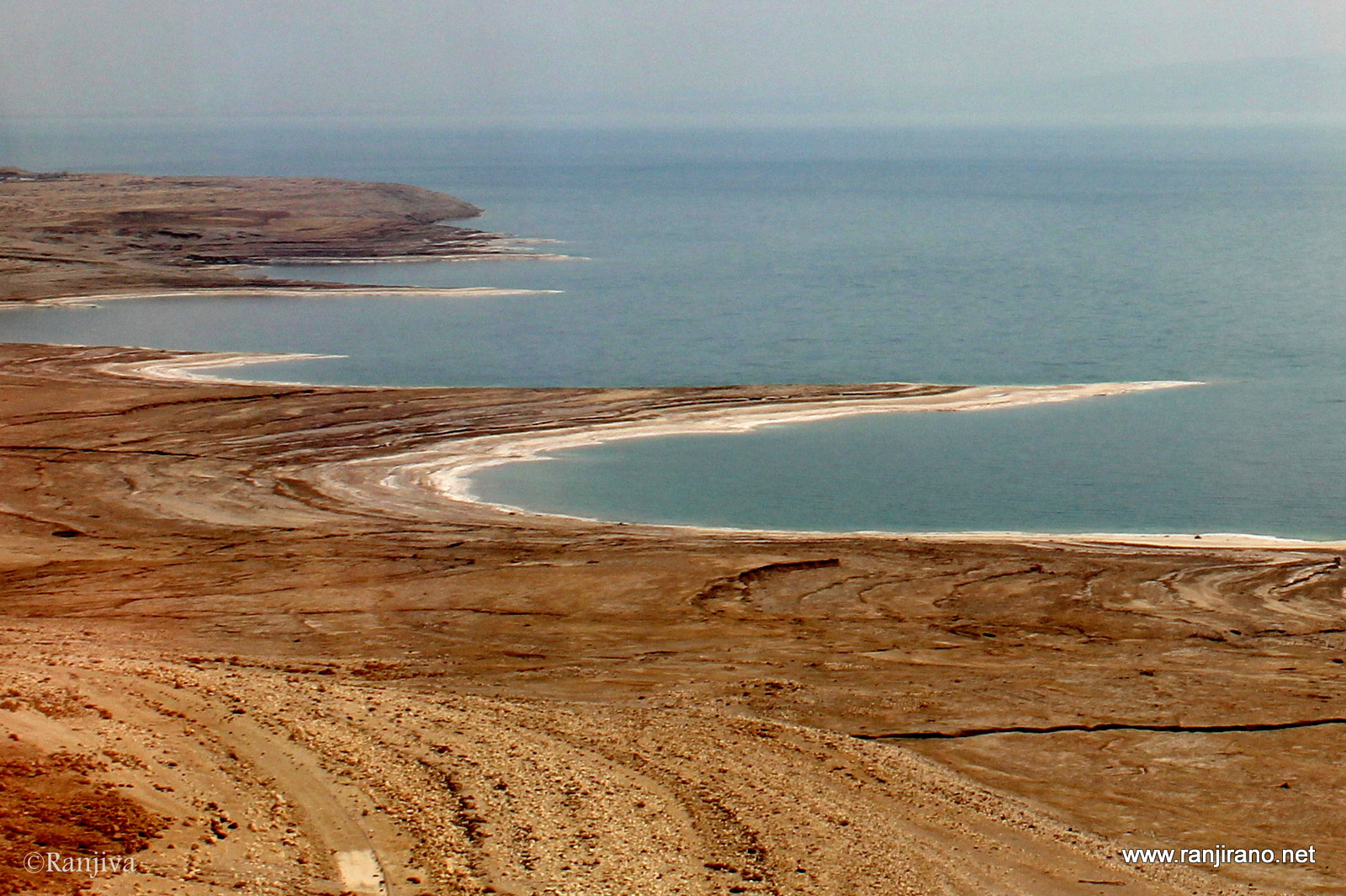 A 425 mètres au-dessous du niveau de la mer, la mer Morte est le point le plus bas de la terre. Ce lac d’eau très salé et très riche en sels minéraux, alimenté par le fleuve Jourdain, partagé entre Israël, la Cisjordanie et la Jordanie mesure environ 65 km de long et 18 km de large. Rien ne pousse aux environs immédiats de cette nappe d’eau salée et il n’existe aucune vie animale, d’où son nom de mer Morte donné par les grecs.