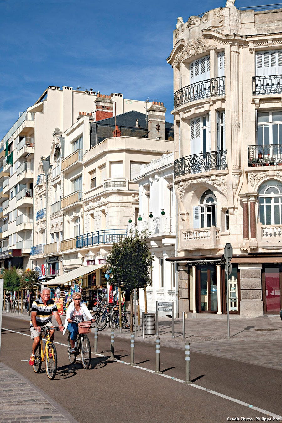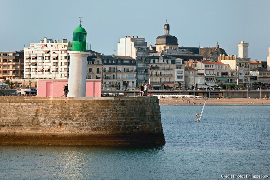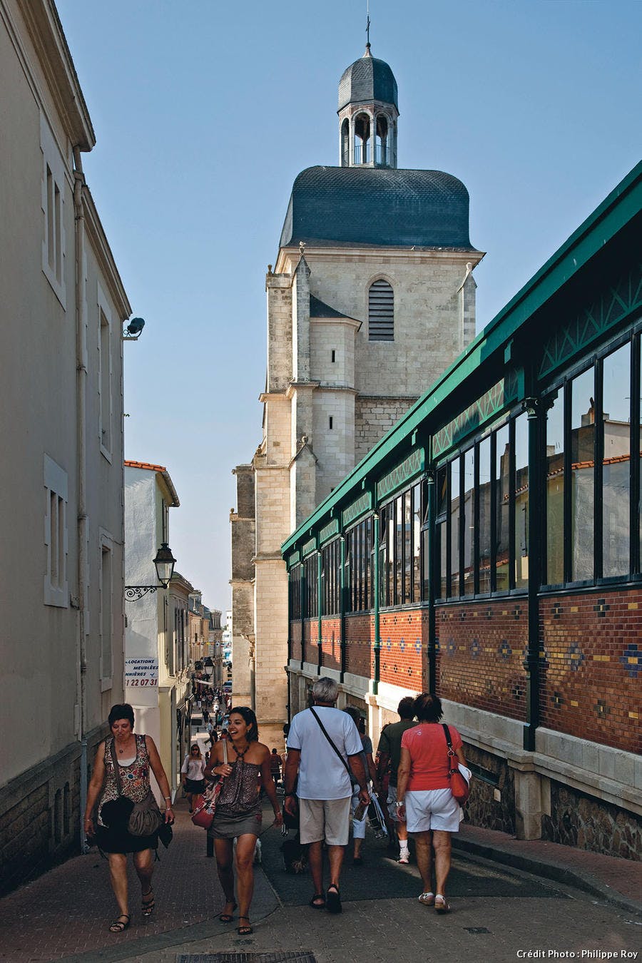 Promenade Georges-Clemenceau, les villas de style anglo-normand du début du XXe siècle côtoient les grands immeubles des années 1970.Riches armateurs et pirates des CaraïbesLa ville, qui quadruple sa population en été, réserve d’autres surprises. L’église Notre- Dame-de-Bon-Port illustre les efforts de la contre-réforme pour asseoir le catholicisme face au protestantisme. Que de richesses dans le décor des portails sculptés et, à l’intérieur, dans celui du ciborium ! Juste à côté, les Halles centrales, dont les colonnes en fonte évoquent les pavillons Baltard, débordent de victuailles. Le mardi et le samedi, il faut se mêler à la foule pour remplir son panier de rillettes de sardines, de poissons frais et de gâche (brioche) vendéenne.