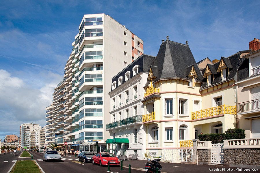 Le Palazzo Clementina, construit sur le Remblai par Charles Charrier en 1919, est emblématique de l'extravagance des architectes des villas balnéaires.L’architecte a joyeusement mélangé les styles en superposant mâchicoulis, oriels, toit terrasse et loggia à l’italienne ! Juste à côté, les Nouvelles Galeries ont conservé leur beau fronton du début du siècle dernier. La bourgeoisie parisienne, celles de Nantes et de Cholet séjournaient dans les demeures cossues construites au sommet de la dune, place de la Résistance.