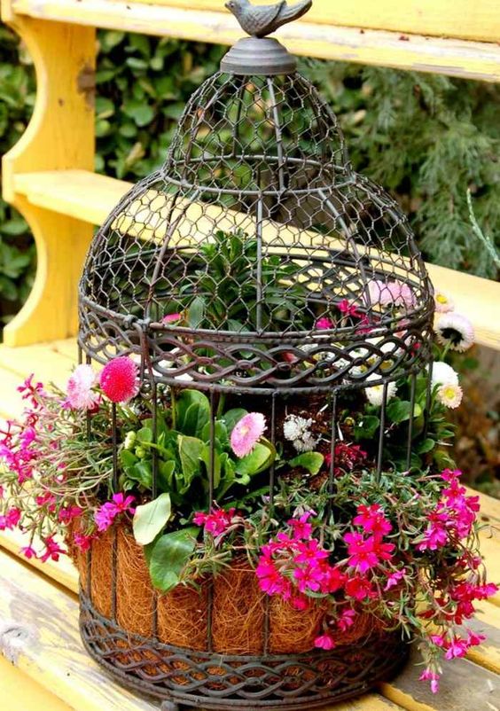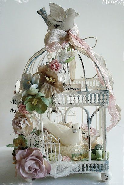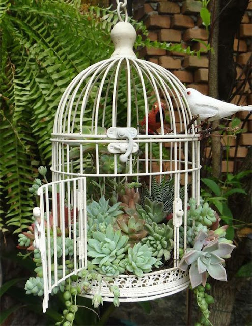 Je n'aime pas les oiseaux en cage, ils sont faits pour voler, symbole de liberté, mais certaines cages sont trés jolies et peuvent bien servir autrement!