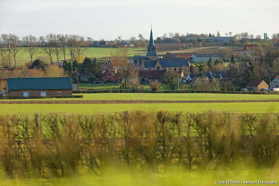Vue du village de Terdeghem depuis le moulin de la Roome.