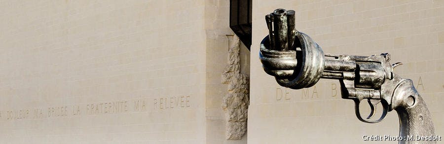 Au Mémorial de Caen, le Revolver noué de Carl Fredrik Reuterswärd est le symbole parfait de la non-violence !