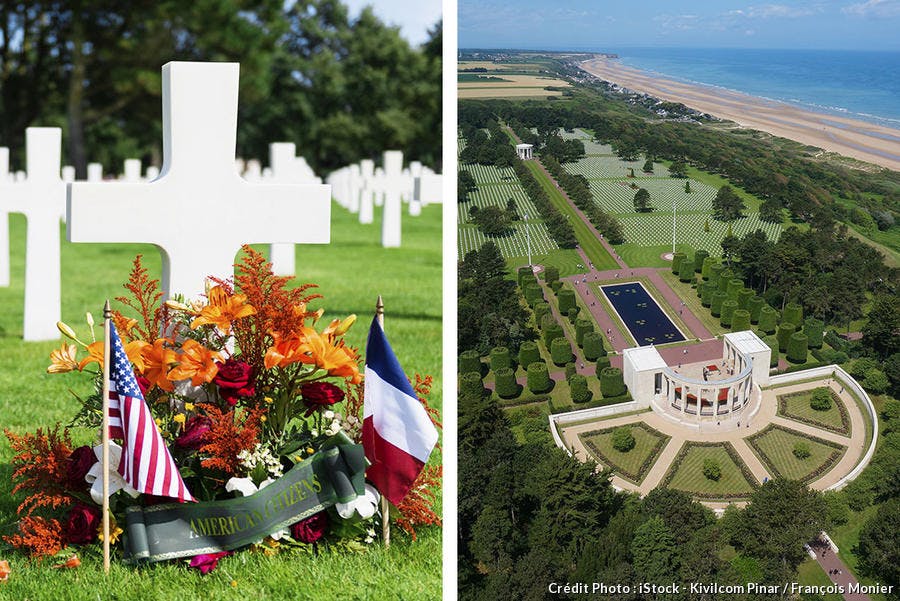 Lieu de mémoire. Pour ressentir toute l’émotion suscitée par les lieux, il faut entrer dans le cimetière militaire américain de Colleville et se diriger vers sa partie centrale. Là, si on fait lentement un tour sur soi-même, la vision sur les croix strictement identiques, taillées dans du marbre de Carrare blanc, s’alignant en perspectives parfaites, est à donner le tournis.