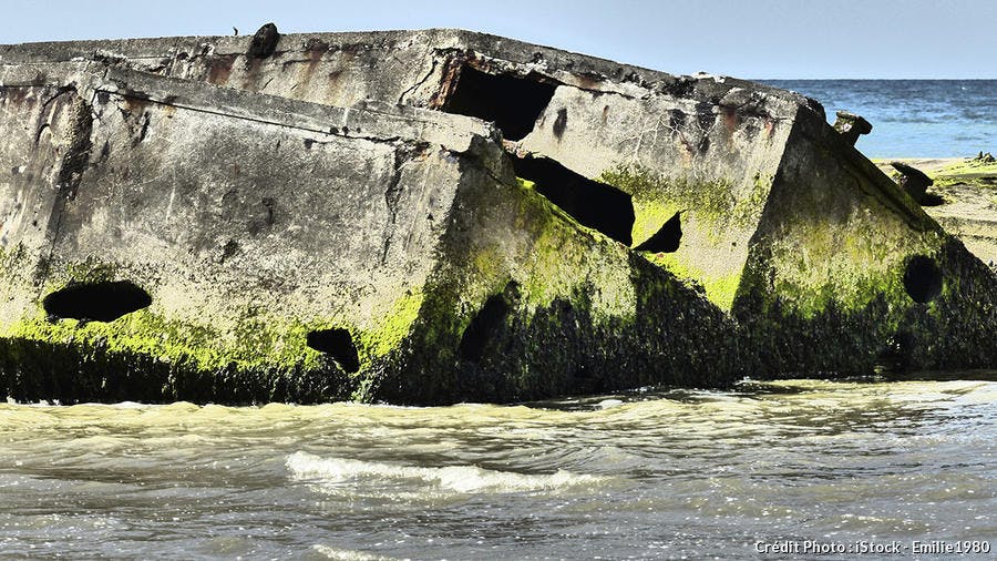 A Vierville-sur-Mer, un reste du port artificiel établi devant Omaha Beach, mais qui fut démantelé par une tempête peu de temps après le D-Day