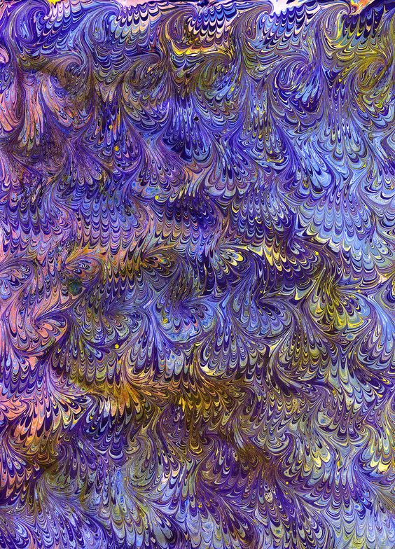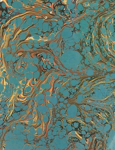 Autrefois, tous les vieux livres étaient habillés sous la couverture et la première page avec ces magnifiques papiers marbrés, appelés aussi, papiers à la cuve. Puis l'utilisation de ces papiers s'est rarifiée, pour des raisons économiques dans la fabrication des livres en série. Mais les passionnés de reliure et de cartonnage ont remis ces papiers au gout du jour et certains ont relancé la fabrication artisanale de ces superbes papiers.