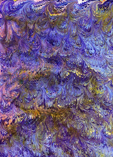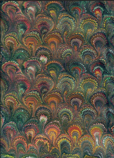 Autrefois, tous les vieux livres étaient habillés sous la couverture et la première page avec ces magnifiques papiers marbrés, appelés aussi, papiers à la cuve. Puis l'utilisation de ces papiers s'est rarifiée, pour des raisons économiques dans la fabrication