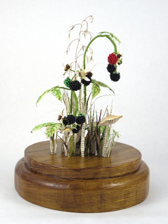 "Mon nom est Kate Kato et je suis une artiste, designer, crafter et un collecteur de choses indésirables. Je vis dans les frontières du pays de Galles, où je crée des sculptures inspirées par la nature qui m'entoure. Mes sculptures sont principalement des plantes et des insectes et sont fabriquées à partir de matériaux recyclés. J'aime travailler principalement avec du papier et du textile, en utilisant la couture et la broderie pour rassembler les différentes parties de ma sculpture . "