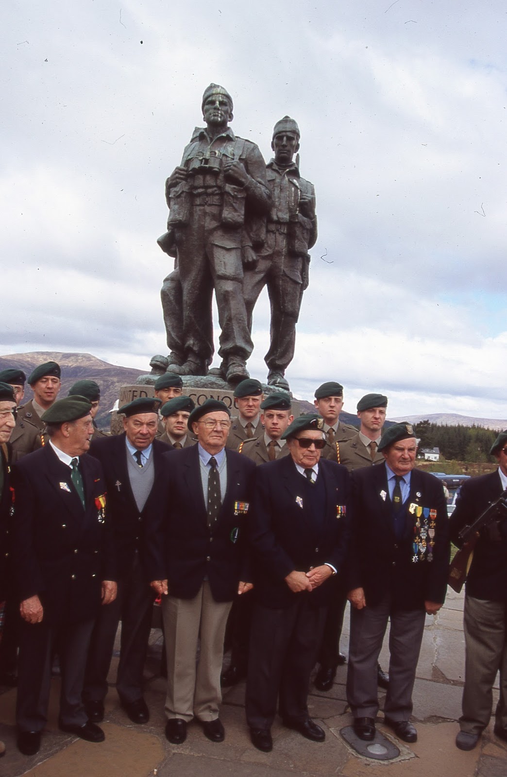 Yves Meudal (à dr.) avec ses copains du 1er BFMC à Achnacarry, en 2004, là où ils s'étaient entraînés, 60 ans plus tôt. Photo JM Tanguy.
