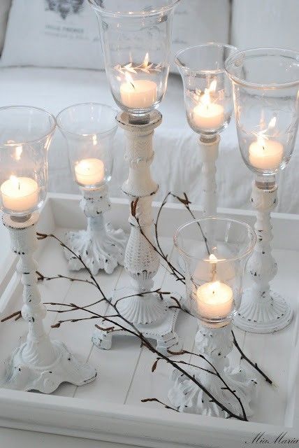Tout cela est trés joli, mais on oublie souvent un détail, joli n'est pas forcément pratique, ni sans danger! Lorsque les bougies fondent, la cire coule sur les bougeoirs et sur les décorations de la base. Il existe des petites coupelles exprés pour empécher la cire de couler sur vos bougeoirs, ça s'appelle des "bobèches"!