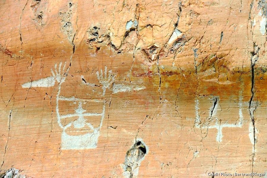 corniformes, des figures anthropomorphes, des poignards et des figures géométriques ornent de grandes toiles de pierre ocre. Depuis le xve siècle, ces gravures n’ont pas cessé de captiver bergers, militaires, chercheurs et visiteurs qui ont traversé ces grands espaces de solitude.