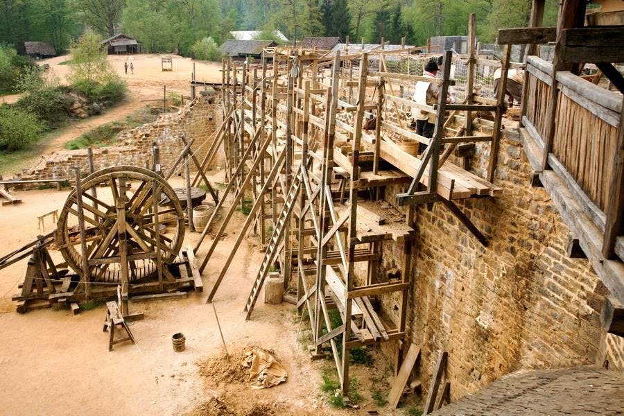 Ils sont une cinquantaine d'ouvriers à participer à l'élévation du château qui s'est révélé être un chantier d'archéologie expérimentale.