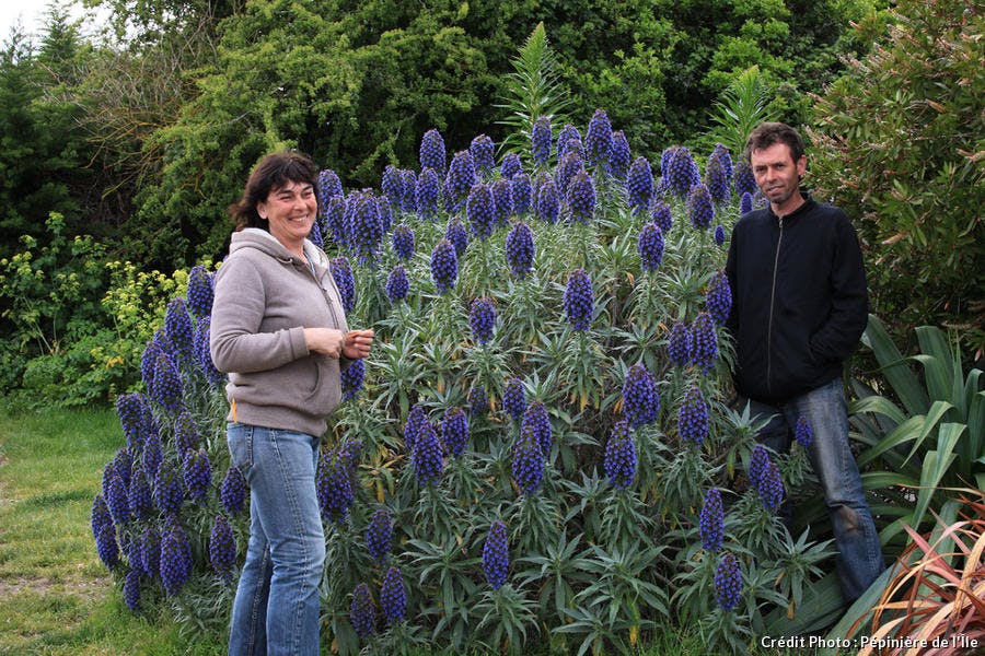 La flore de l'Île vue par un pépiniériste local. Charles Blasco, pépiniériste sur l’île, nous guide sur ce bout de terre au large de Paimpol. Ici, avec son épouse.
