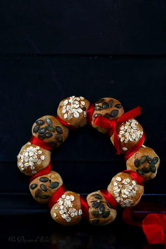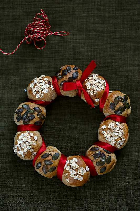 Couronne de pain de Noël : couronne de pain à l'épeautre et au seigle (avec des pains individuels)