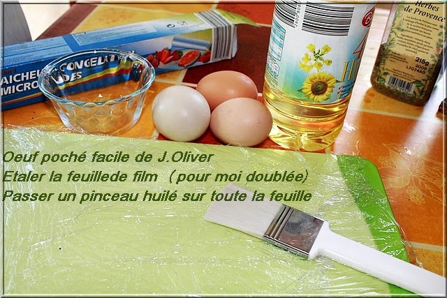 1 - Chauffer une casserole d'eau jusqu'à ébullition Étaler la feuille de film (moi je les double). Huiler au pinceau